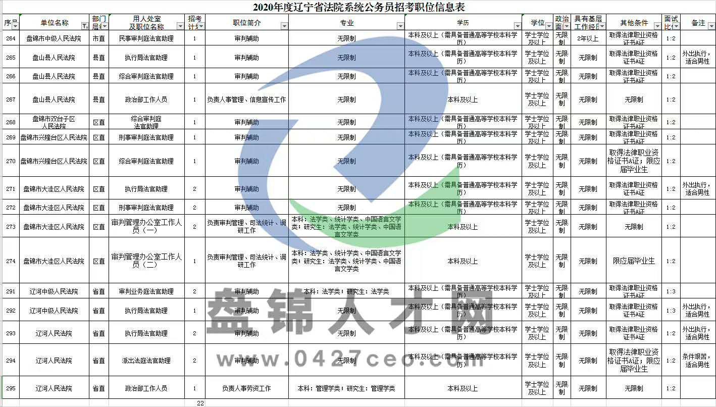 5.當招考職位的報考人數(shù)與招錄計劃未達到開考比例(省級機關為1:3,市以下機關及全省監(jiān)獄戒毒系統(tǒng)開考比例為1:2,其中法官助理、檢察官助理職位,開考比例為1:1.5)時,調(diào)整或取消該職位招考計劃,調(diào)整或取消的職位及招錄計劃將在遼寧人事考試網(wǎng)公布,報考已取消職位的考生,必須在規(guī)定時間內(nèi)報考其他符合招考條件但未被取消的職位,招錄機關對改報職位的考生不再進行資格審查。未按規(guī)定時間改報的,視為放棄報考。