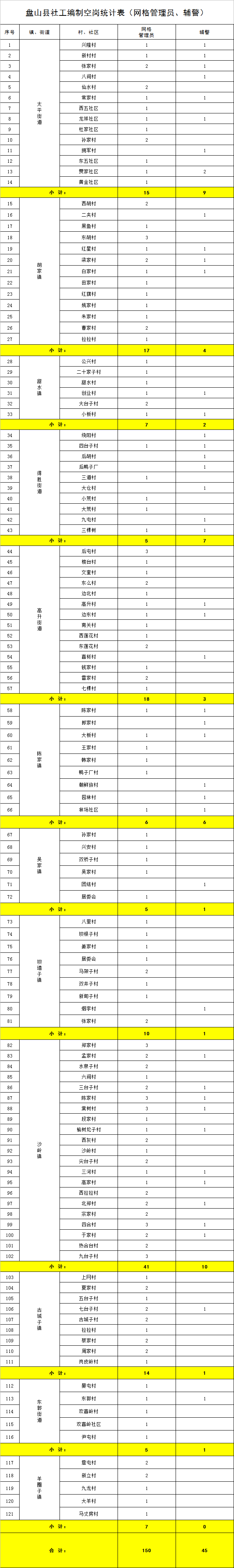面向社會公開招聘村(社區(qū))網(wǎng)格管理員150名,駐村(社區(qū))輔警45名。