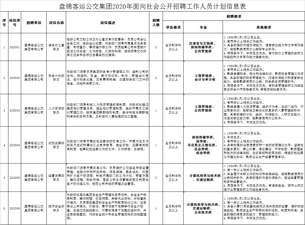 附件1:盤錦客運(yùn)公交集團(tuán)2020年公開招聘工作人員計劃信息表.xlsx