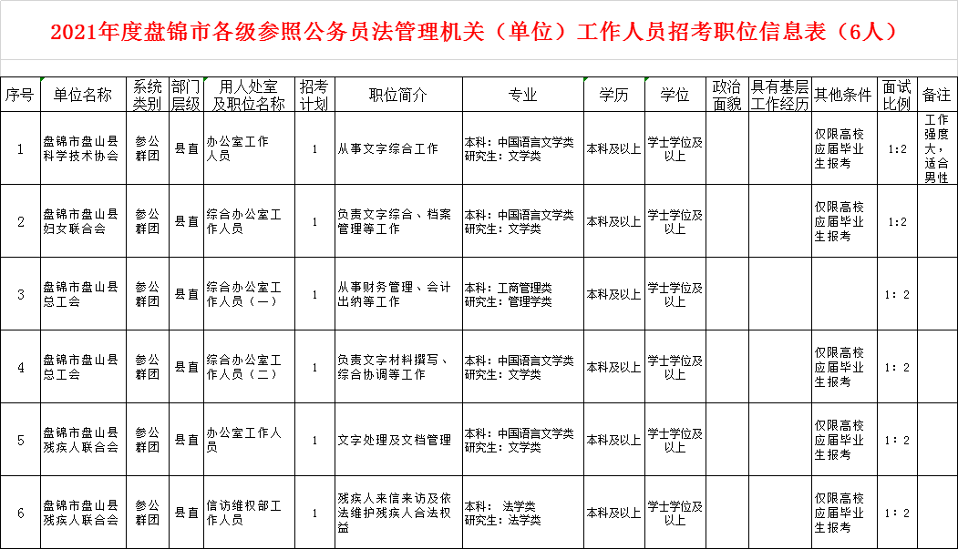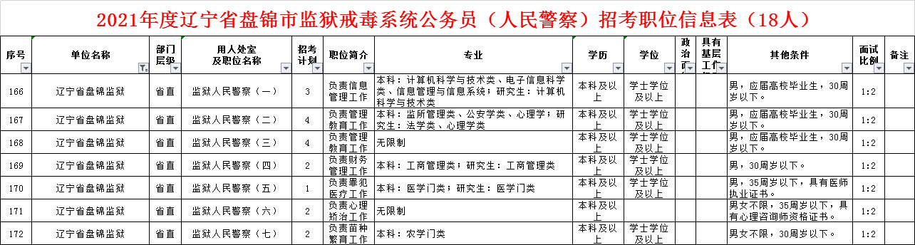 附件:2021年度遼寧省考試錄用公務(wù)員招考職位信息表