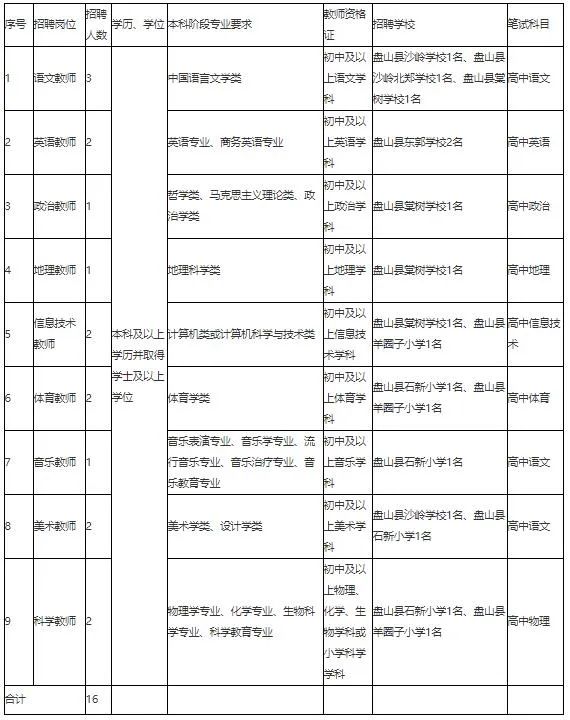 2022年盤(pán)山縣義務(wù)教育學(xué)校公開(kāi)招聘教師計(jì)劃表