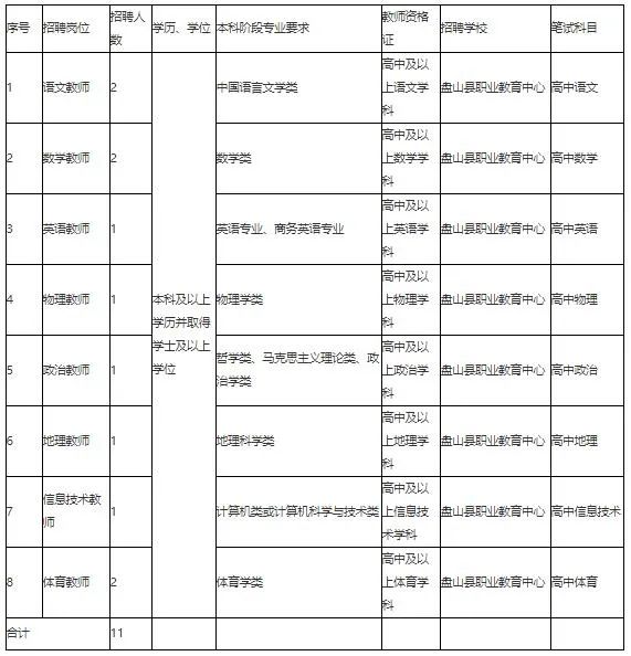 2022年盤(pán)山縣職業(yè)教育中心文化課公開(kāi)招聘教師計(jì)劃表