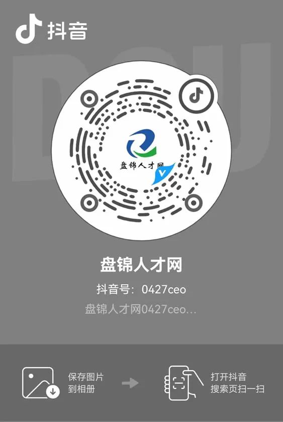 盤錦人才網(wǎng) 官方抖音號上線啦 通過“盤錦人才網(wǎng)”抖音號 您能享受到 查看最新招聘職位,足不出戶找工作 希望關注我們,積累到2萬粉絲量 抖音才能允許我們直播招聘,