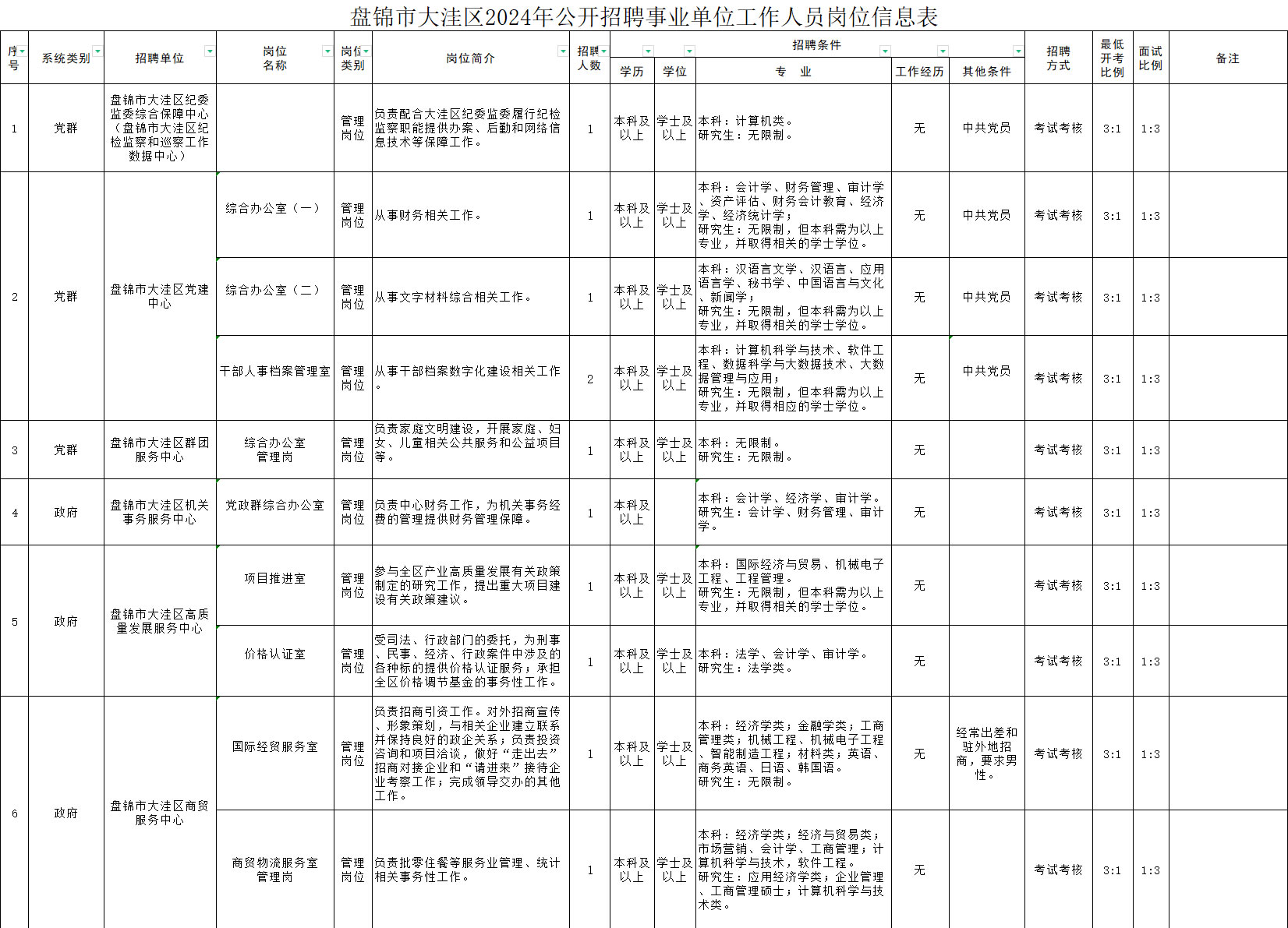 1.盤錦市大洼區(qū)2024年公開招聘事業(yè)單位工作人員崗位信息匯總表.xls