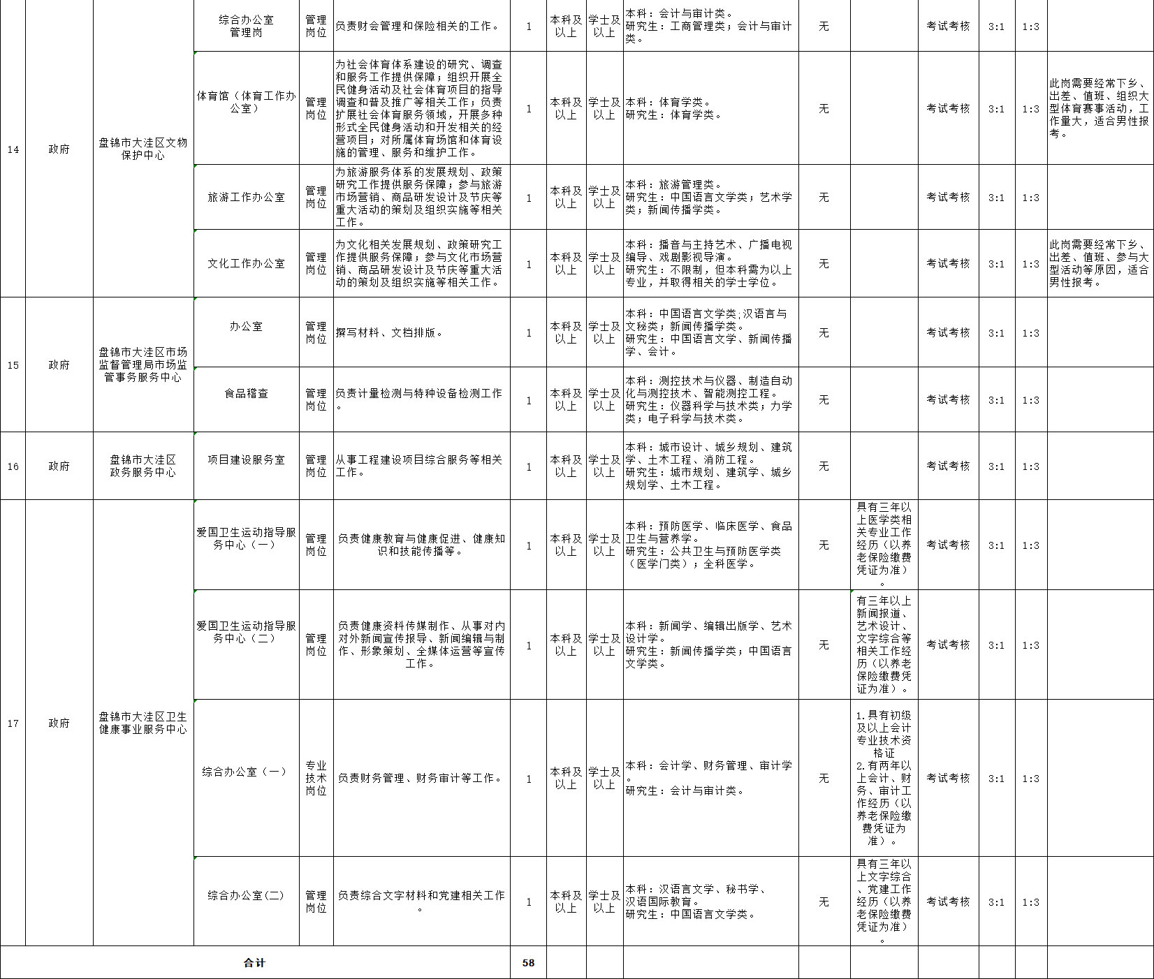 盤錦市大洼區(qū)2024年公開招聘事業(yè)單位工作人員58人