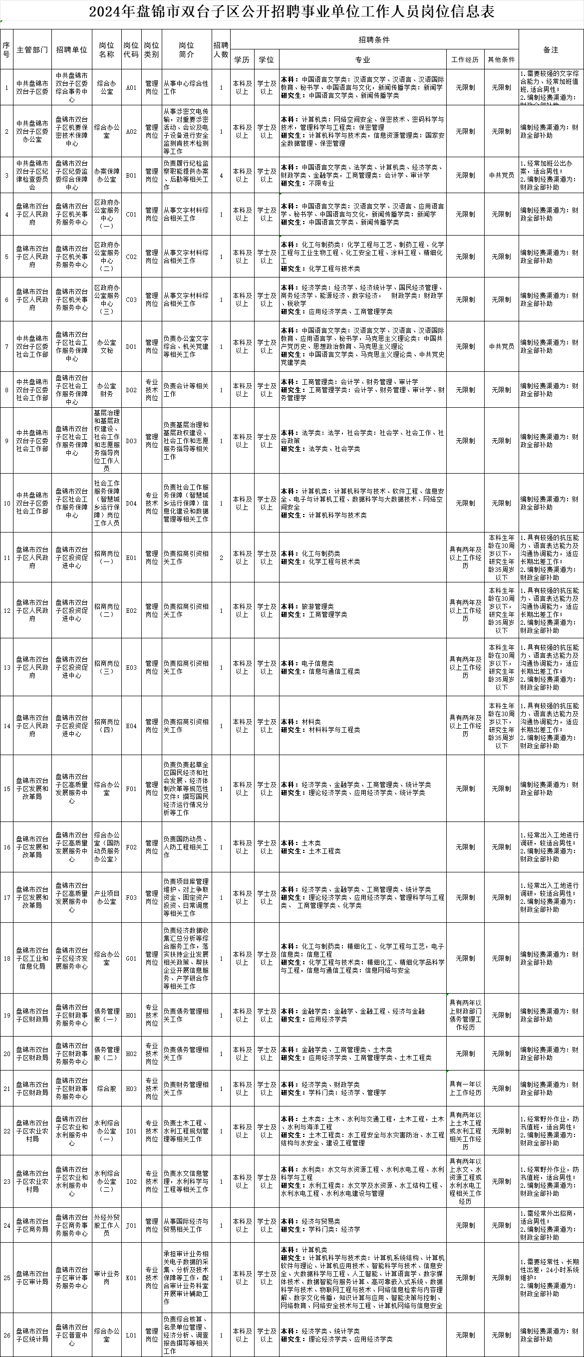 附件:2024年盤錦市雙臺(tái)子區(qū)公開招聘事業(yè)單位工作人員崗位信息表.xlsx