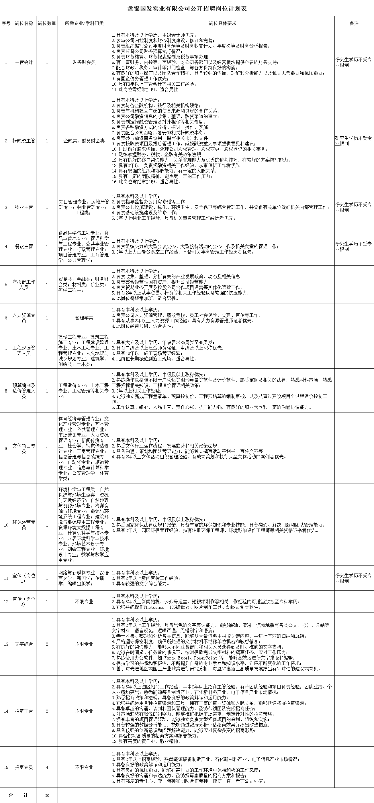 國有企業(yè)!盤錦國發(fā)實(shí)業(yè)有限公司公開招聘20人!