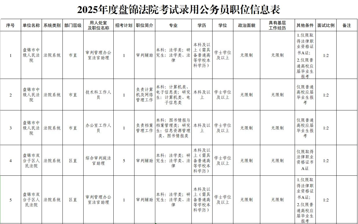 2025年度遼寧省考試錄用公務員公告已發(fā)布,盤錦法院擬招錄24人!