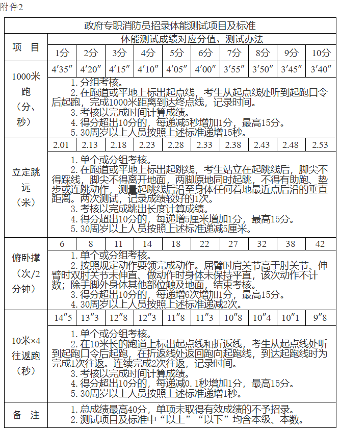 2.政府專職消防員招錄體能測試項目及標(biāo)準(zhǔn)