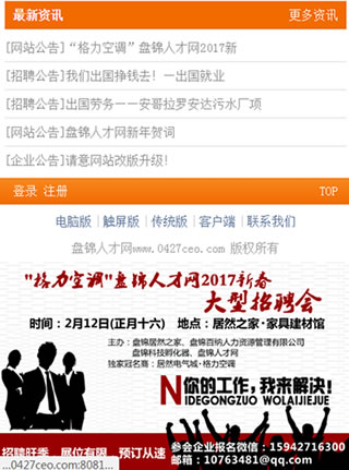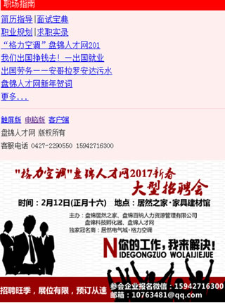 2) 盤錦人才網手機觸屏版分級頁廣告450*360像素55個頁面