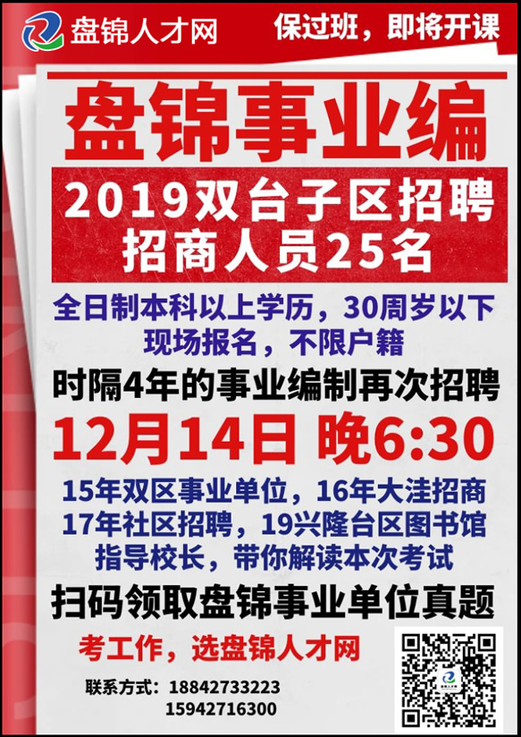 盤錦市雙臺子區(qū)2019年公開招聘招商工作人員25人